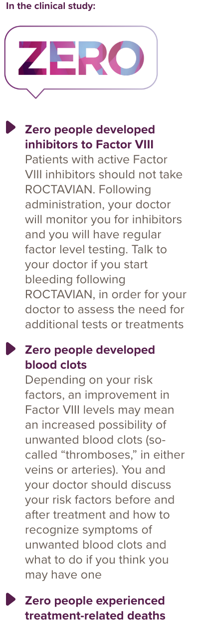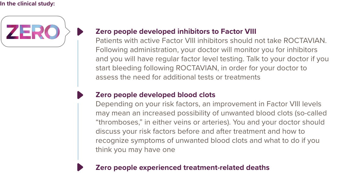 - Understanding the risks and benefits of ROCTAVIAN: While the majority of patients experience a benefit from ROCTAVIAN, the treatment response and duration may vary. Some patients do not experience a benefit from ROCTAVIAN. It is not possible to predict if and how much a patient may benefit. After administration, your doctor will monitor your lab tests and talk to you about whether you can stop prophylaxis, whether you should start prophylaxis again, and whether and how you should treat any surgeries, procedures, injuries, or bleeds